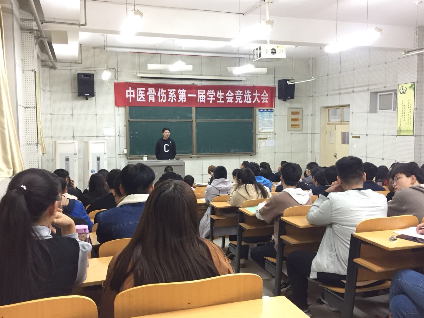 为加强中医骨伤系学生干部队伍建设,推动系部学生管理,经过近一个月的前期筹备,10月18日晚7点,中医骨伤系在第七阶梯教举行第一届学生会竞选大会。宋朝功教授,简鹏老师、李炜老师、各班主任及学生代表参加。