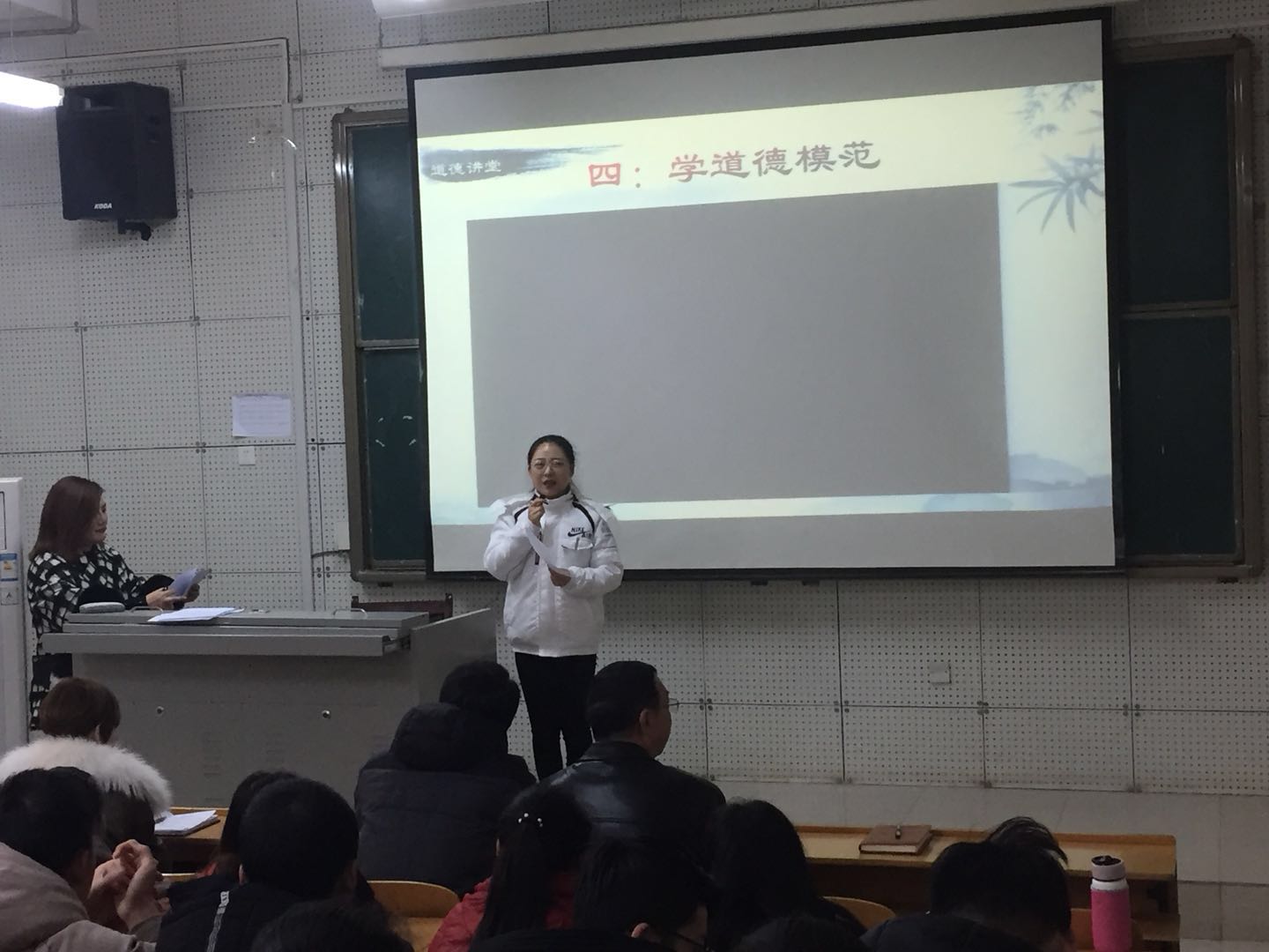 为深入推进学院省级文明单位创建工作,提高骨伤系师生的思想道德水平和文明素质,营造道德建设的浓厚氛围,按照《河南推拿职业学院“道德讲堂”活动实施方案》要求,中医骨伤系系于1月10日在学院第七阶梯教室举办以“医行天下,爱在人间”为主题的道德讲堂活动。学院宣传部副部长王震,骨伤系宋朝功教授等老师与100余名同学一同参加。